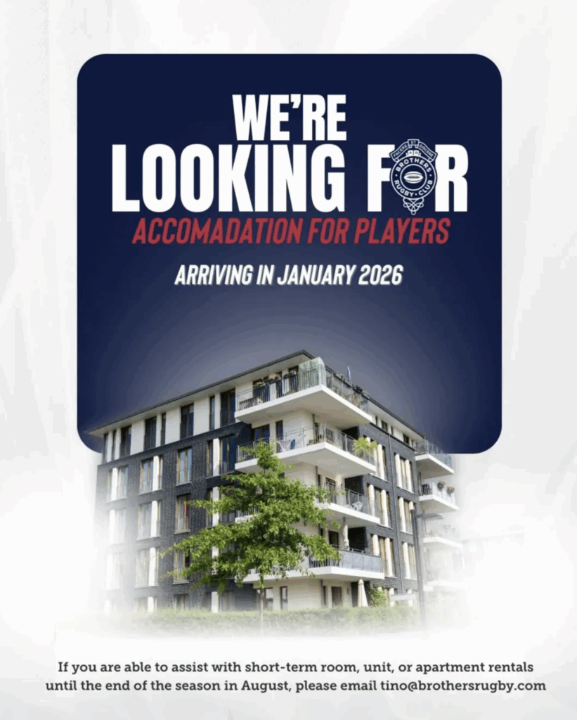 A quick follow-up to our December post — we’re still seeking short-term accommodation for a small number of incoming Brothers players arriving in January 2026, through to August.
