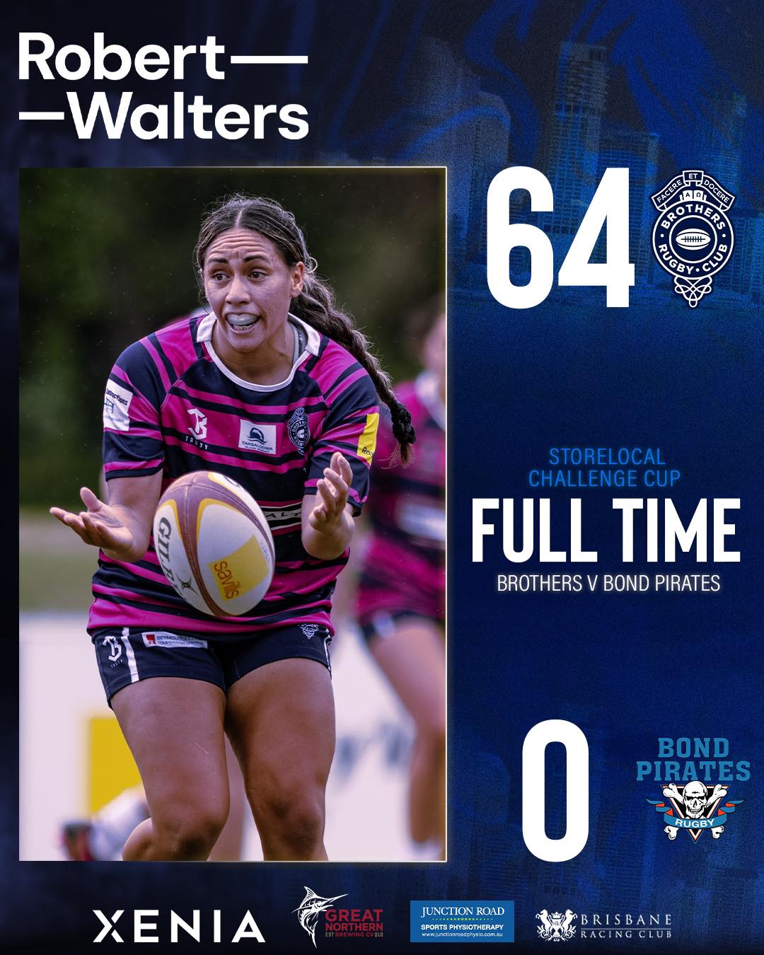 29 March Brothers Women's squad have started their StoreLocal Challenge Cup campaign with a bang, comprehensively beating the Bond University Pirates away this weekend. With Southeast Queensland once again seeing heavy rainfall, the match was played in slippery conditions on a sodden Gold Coast track, however this didn't stop Brothers from putting on a try-scoring master class. The girls in Butchers Stripes had new fewer than seven different try-scorers, with an electric Margaret McConnachie and barnstorming Faalaotonga Faalaotonga taking a brace of tries each. This was supplemented by excellent work off the kicking tee from Wynonah Conway and Emma Tanwan....